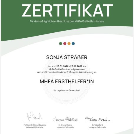- 2023: SGD-Abschluss – Psychologische Beraterin & Business Coachin